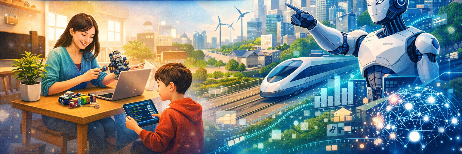 日常や社会に潜む課題を起点に、ICTを統合する力を育て、次世代のイノベーション創出に貢献します。