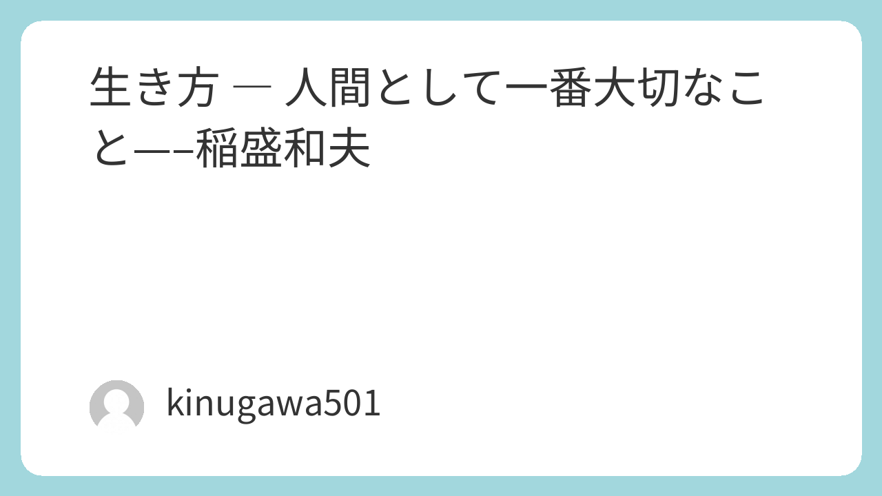 生き方 ― 人間として一番大切なこと—–稲盛和夫