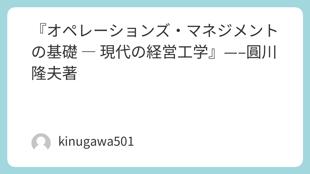 7.BOOK『オペレーションズ・マネジメントの基礎 ― 現代の経営工学』(圓川 隆夫著、2009)