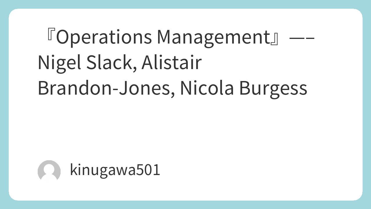『Operations Management』(Nigel Slack, Alistair Brandon-Jones, Nicola Burgess)